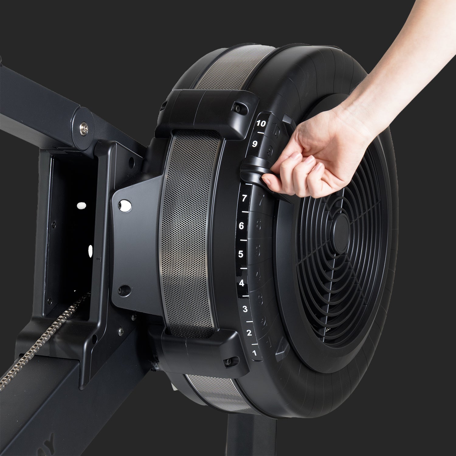 The spiral damper adjusts airflow to the flywheel, giving you a smooth, quiet, and customizable rowing experience. With 10 adjustable resistance settings, users can adjust how much air flows into the flywheel and therefore change how the stroke feels.