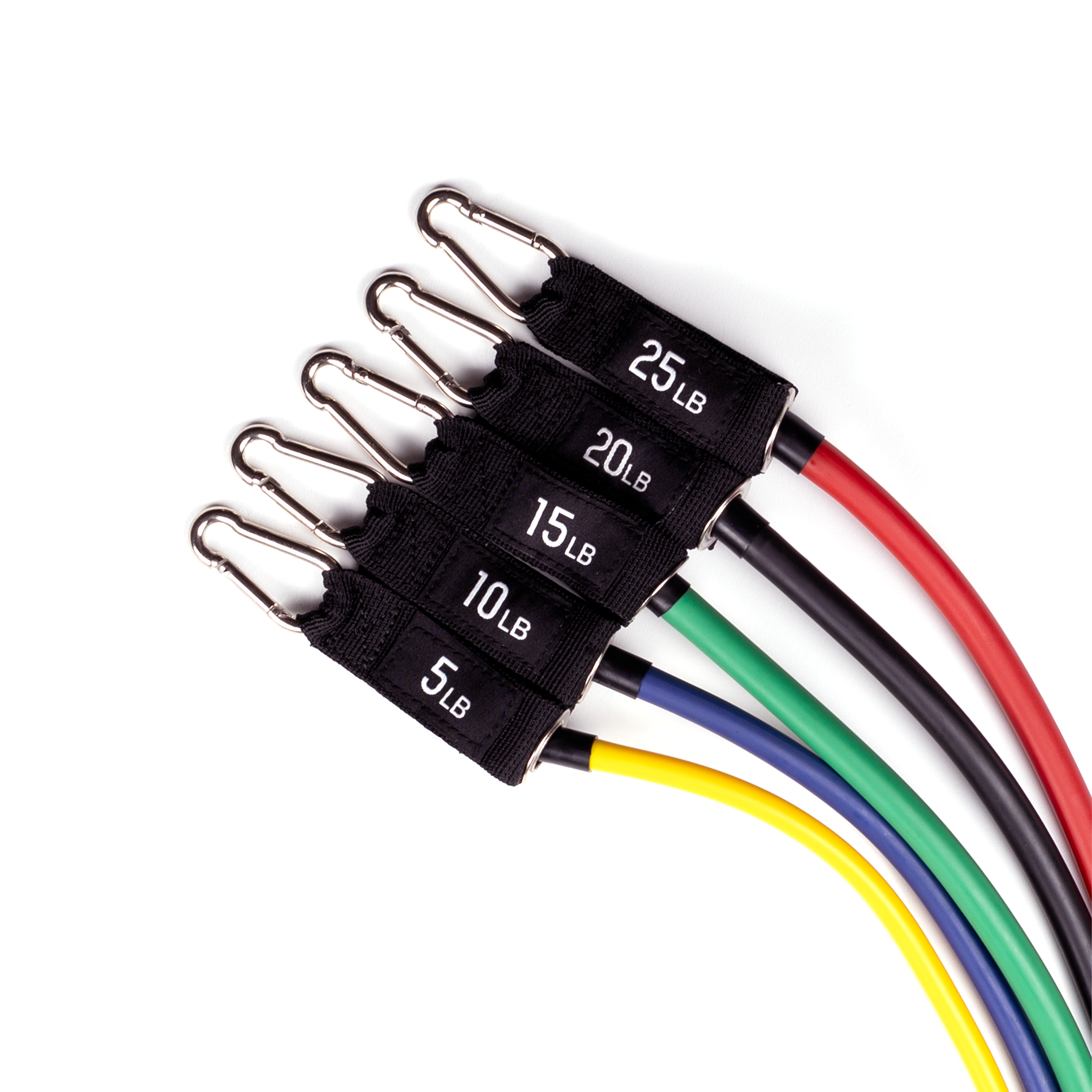 Maximize your training potential with the FitWay Resistance Band Set, designed to support a wide range of strength and conditioning exercises. This versatile set includes five high-quality resistance bands—Yellow (5 lbs), Blue (10 lbs), Green (15 lbs), Black (20 lbs), and Red (25 lbs)—which can be used individually or combined. The metal clipping system easily attaches to soft-grip handles or ankle straps, providing a secure and comfortable experience.